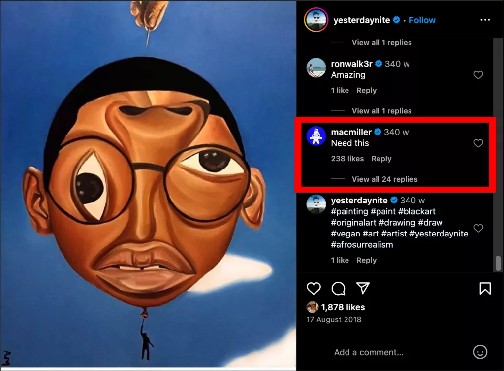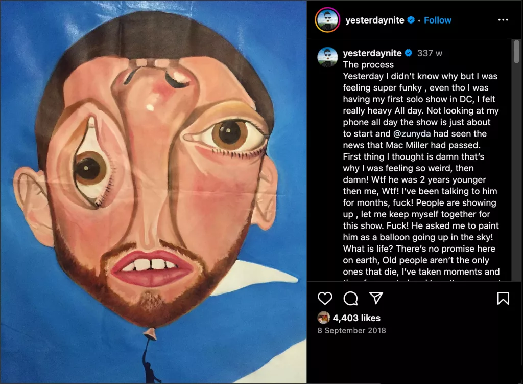 Well, that makes it sound far more like Mac had done-and-dusted shelved this. But remember that bit about Mac commissioning artwork for the album? Less than a month before his death, Mac commented “Need this” on a painting by future Balloonerism cover artist Alim Smith, and you might recognise the painting’s style from somewhere.